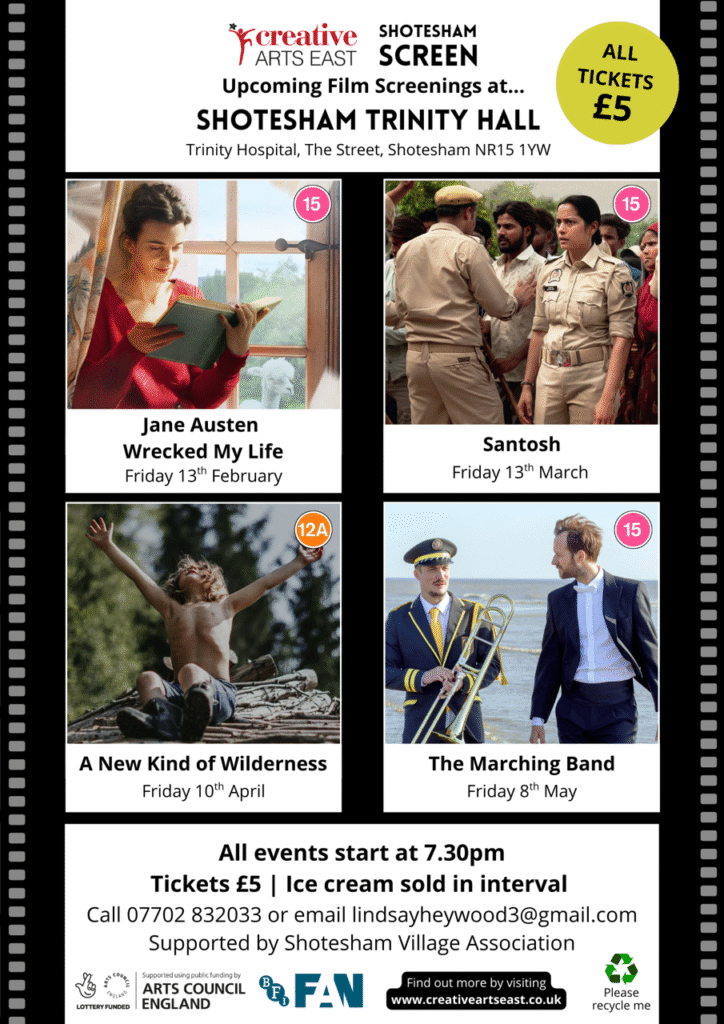 Shotesham Screen – The Ballad of Wallis Island in January was a great start to the 2026 film year, see poster for what’s coming up next.
